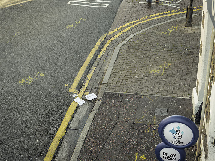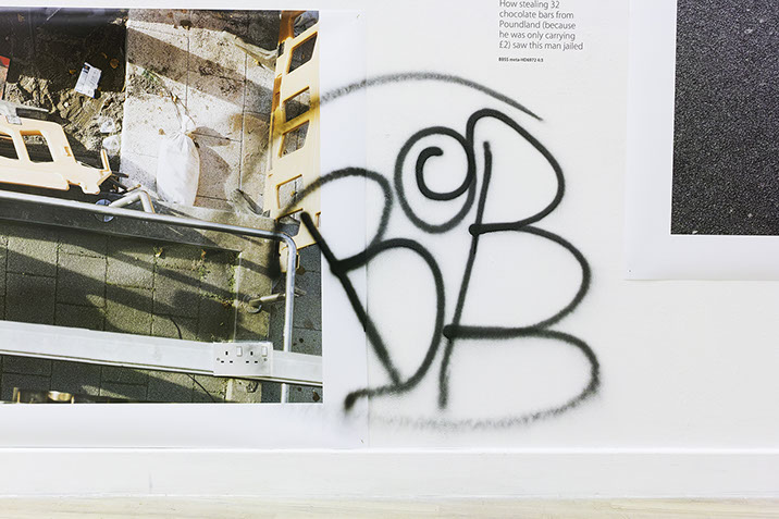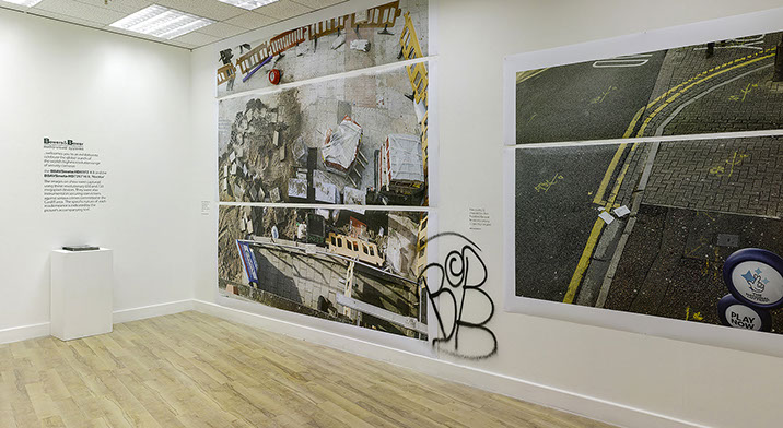 Bowers & Bower Audio Visual Systems, Installation view (showing vandalised exhibition prints) , Arcade space, Cardiff, 2016.