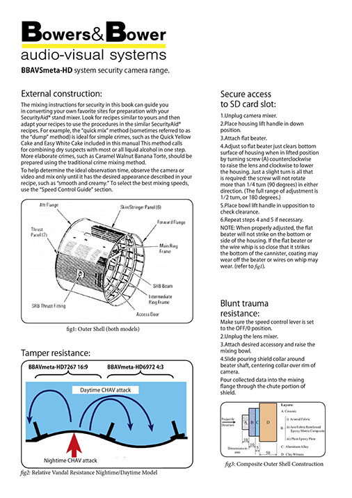 Sales Material, the BBAVSmeta-HD6972 4:3 ultra high resolution security camera, Bowers & Bower Audio Visual Systems, Richard Bowers and Ric Bower, PDF and A4 printed sales folder with inserts, 2016
